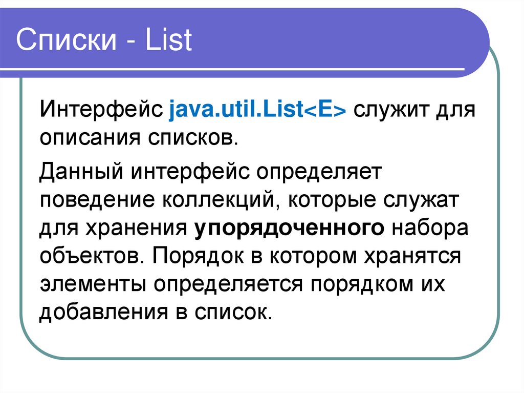 Списки - ListИнтерфейс java.util.List<E> служит для