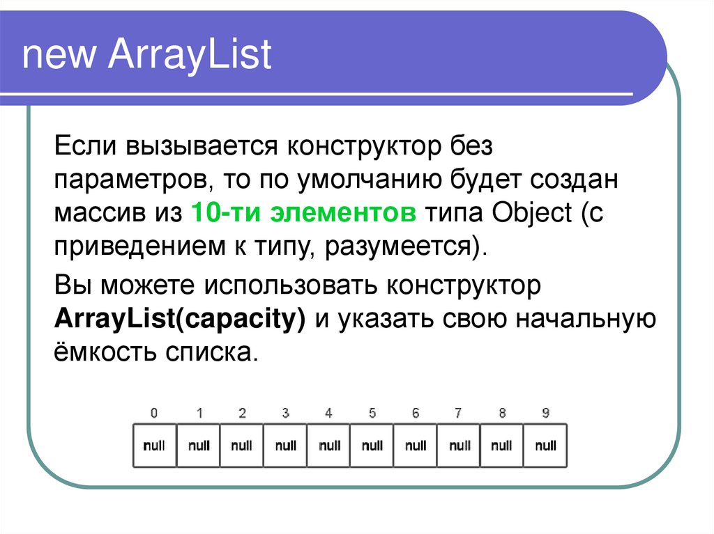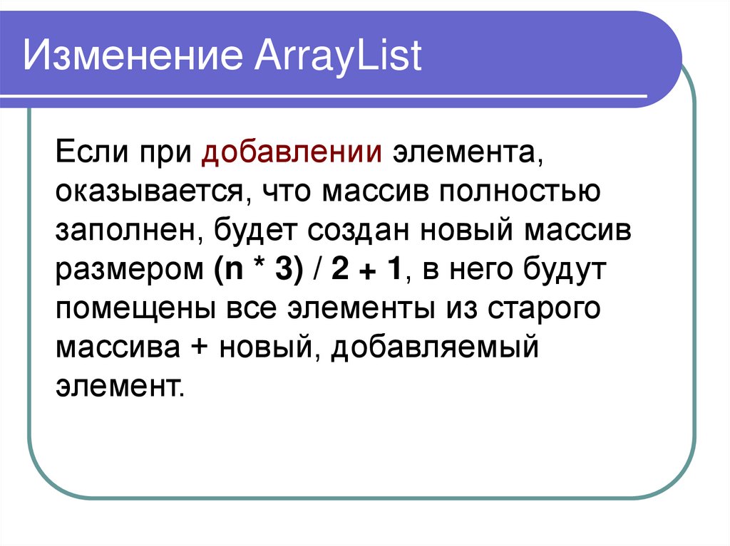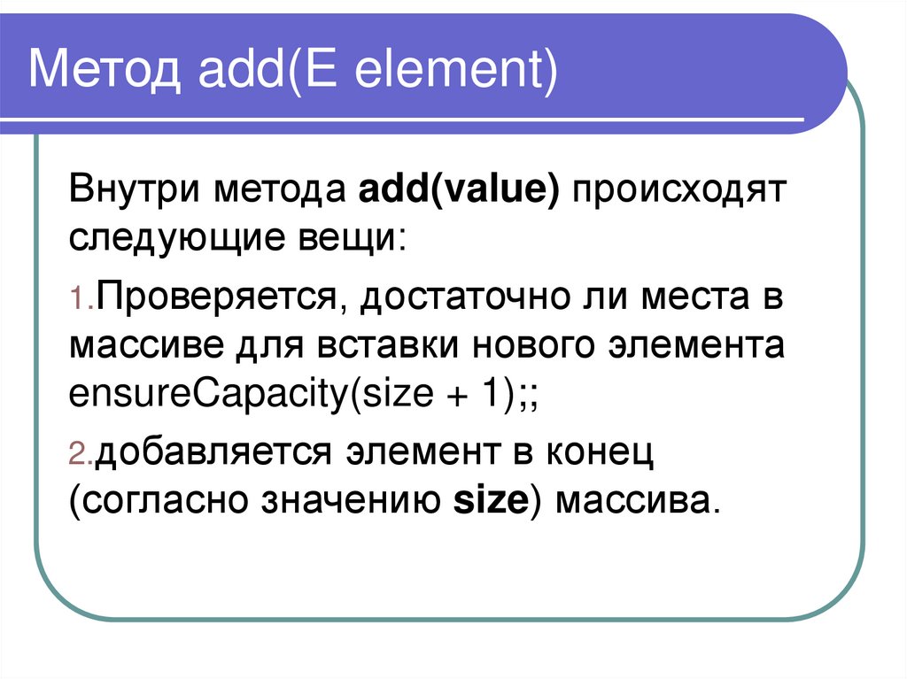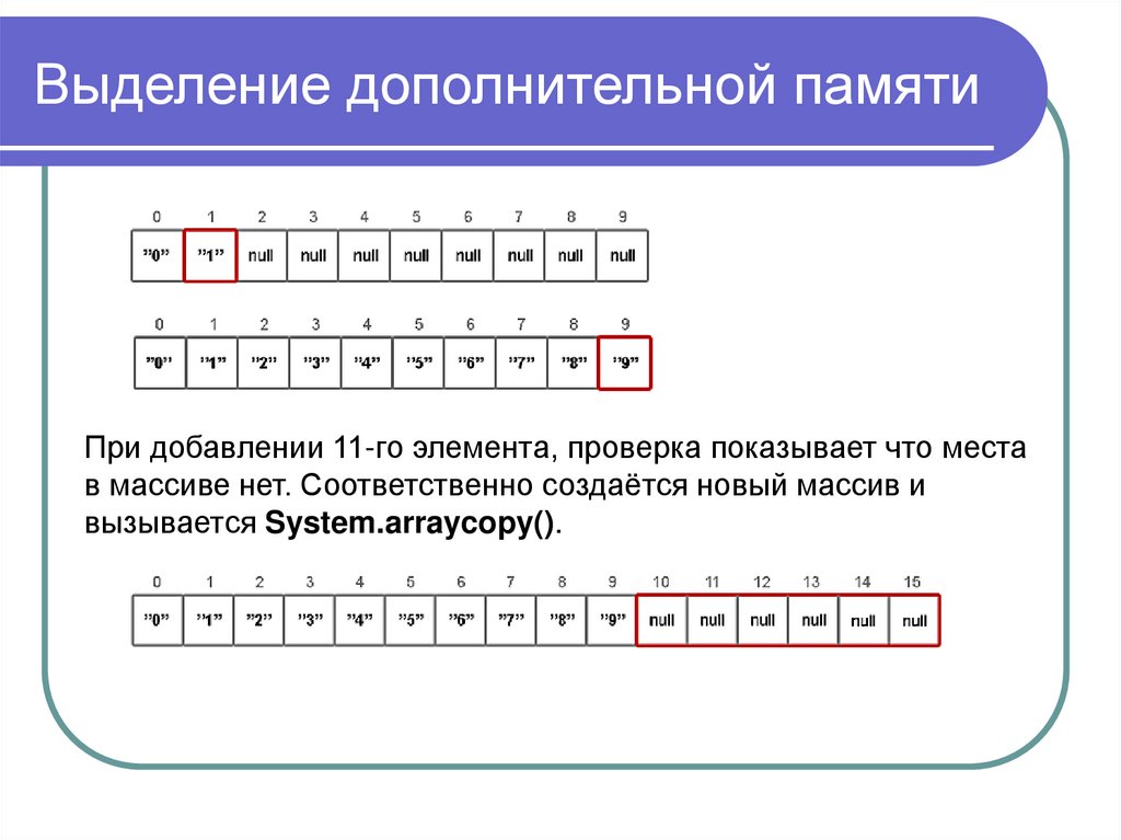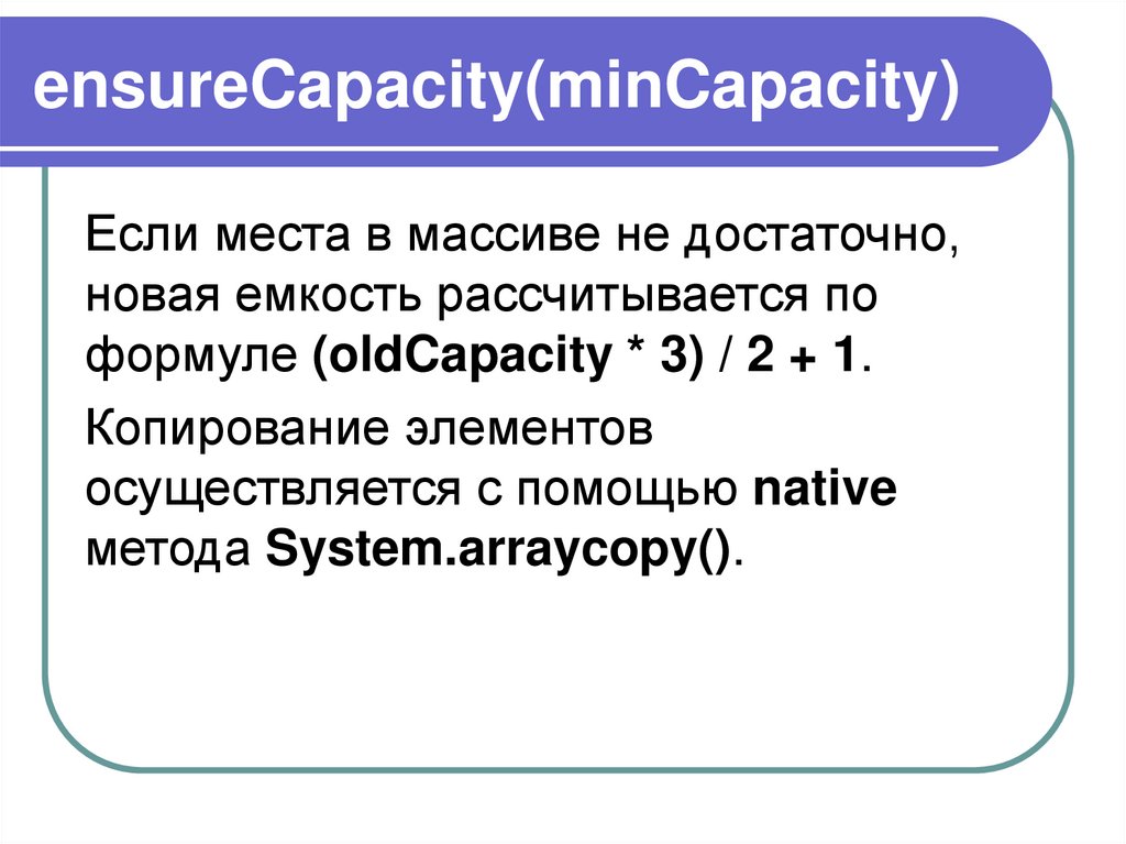 ensureCapacity(minCapacity)Если места в массиве не достаточно,
