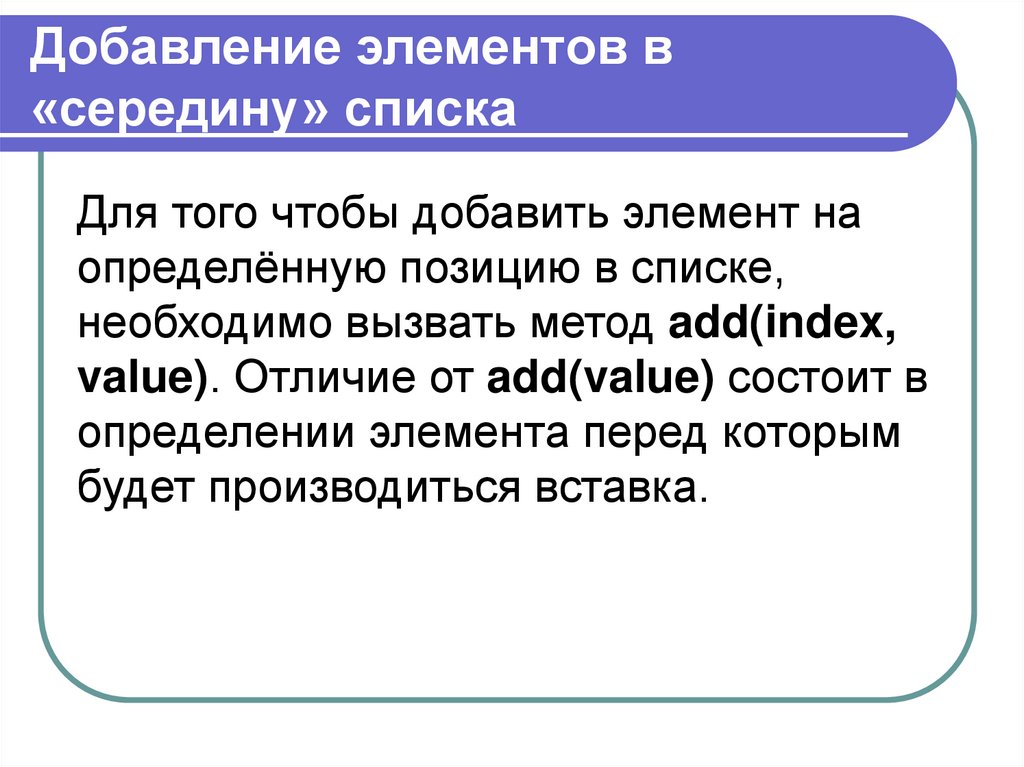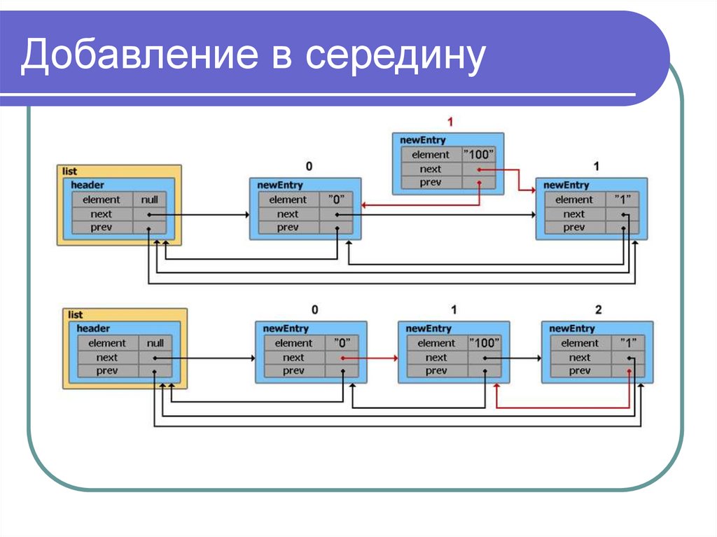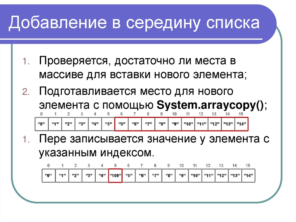Добавление в середину спискаПроверяется, достаточно ли места в