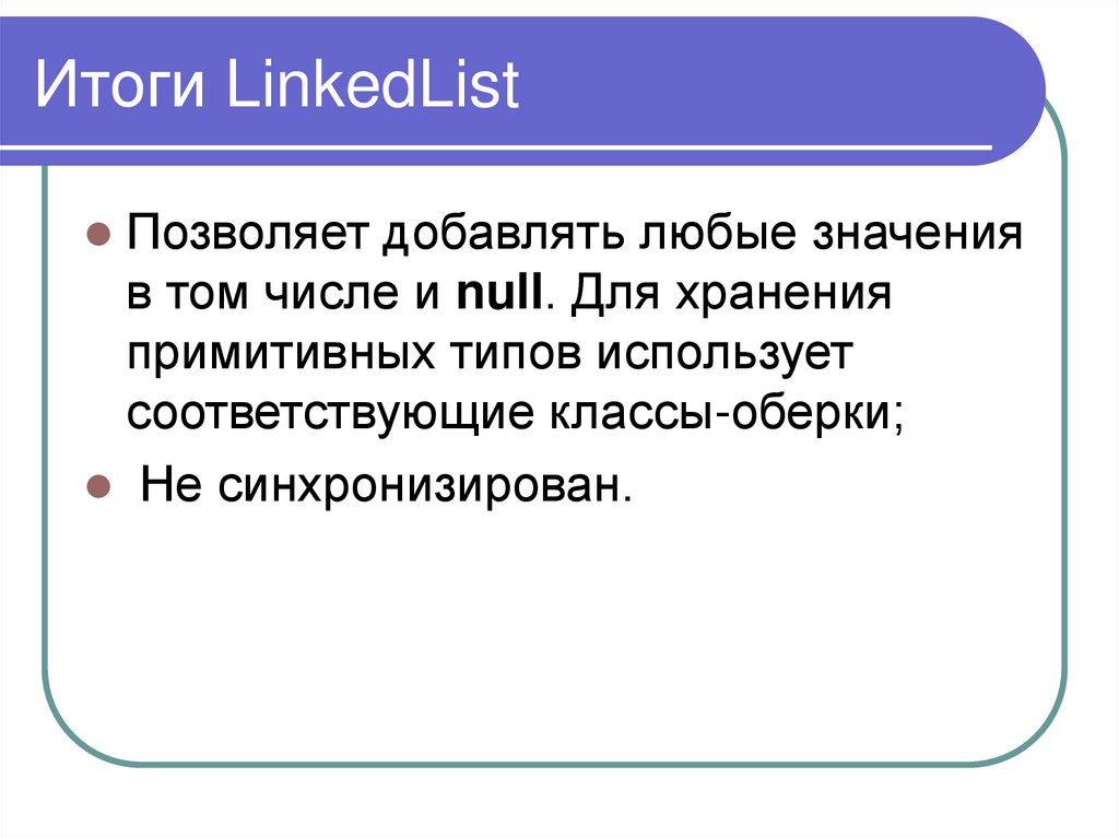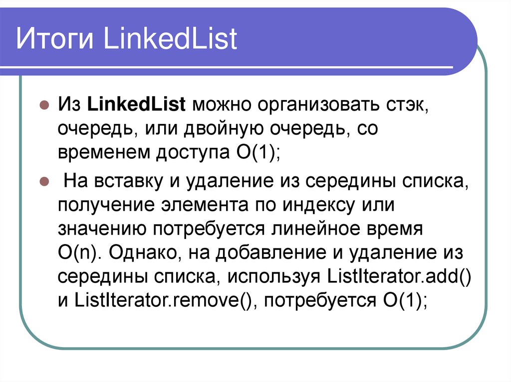 Итоги LinkedListИз LinkedList можно организовать стэк,