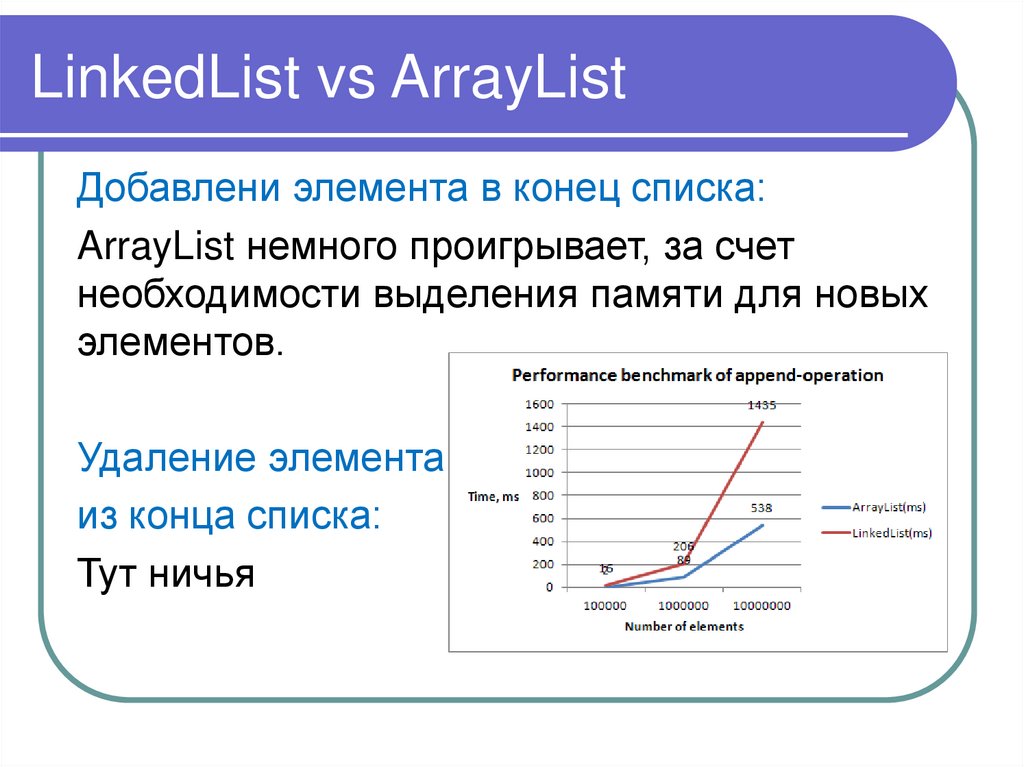 LinkedList vs ArrayListДобавление и удаление в начале списка