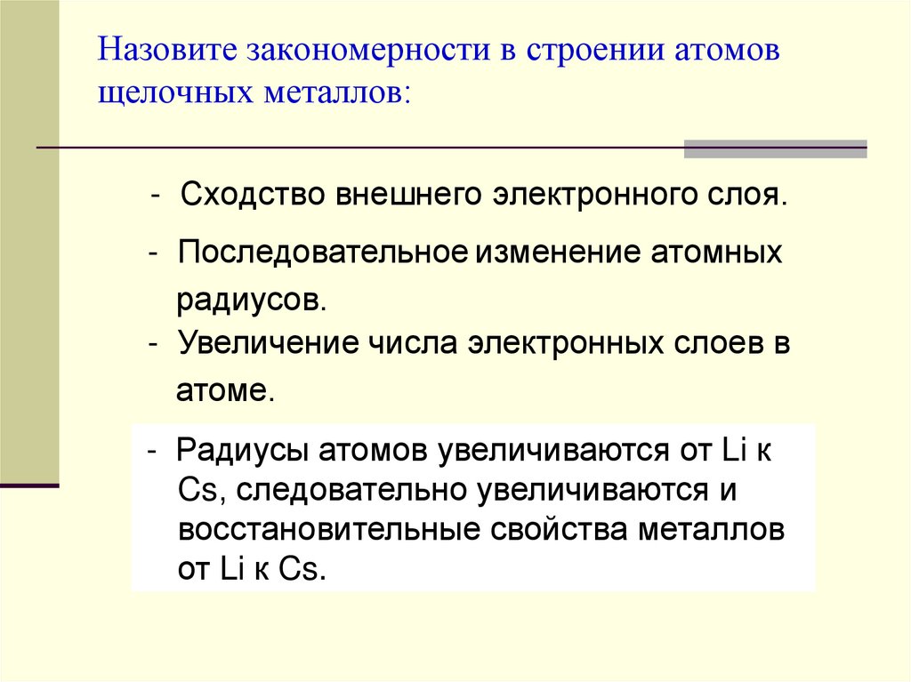 4. Назовите закономерности в строении атомов щелочных металлов: