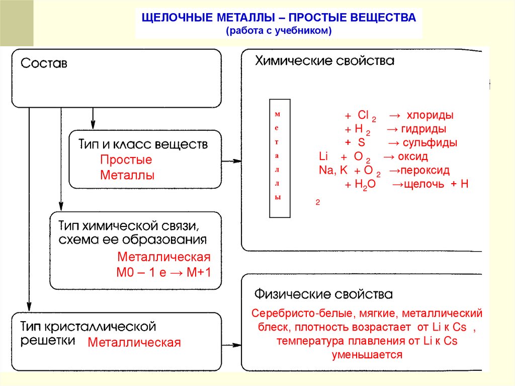 ЩЕЛОЧНЫЕ МЕТАЛЛЫ – ПРОСТЫЕ ВЕЩЕСТВА(работа с учебником)