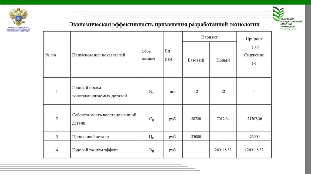 Экономическая эффективность применения разработанной технологииВариант