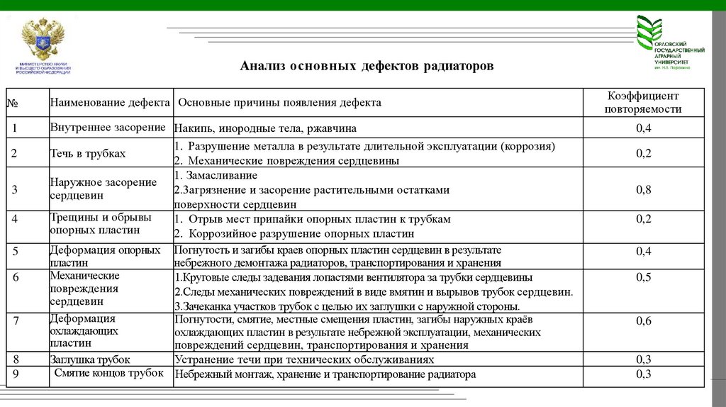 Анализ основных дефектов радиаторов№