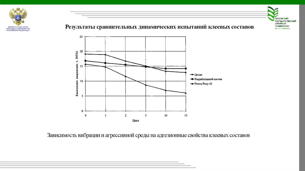 Результаты сравнительных динамических испытаний клеевых составовЗависимость вибрации и агрессивной среды на адгезионные свойства клеевых составов