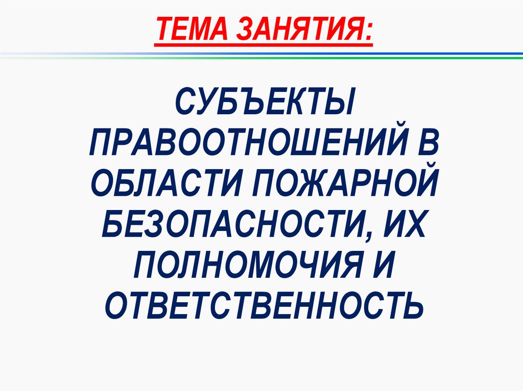 Субъекты правоотношений в области пожарной безопасности, их полномочия и ответственность