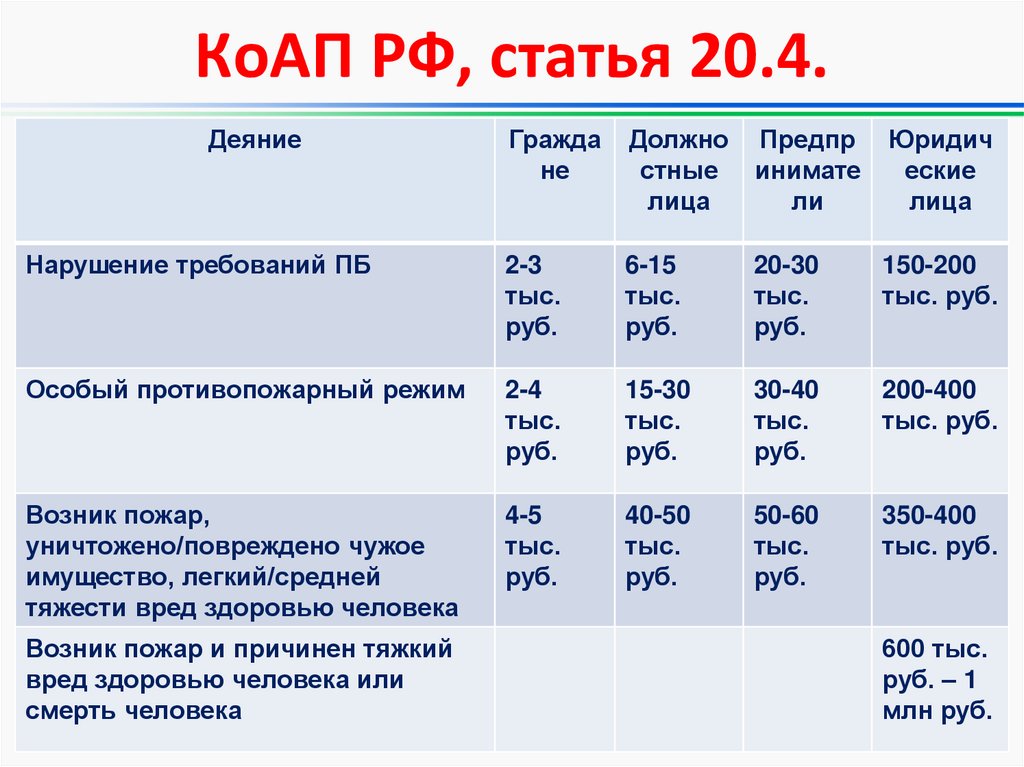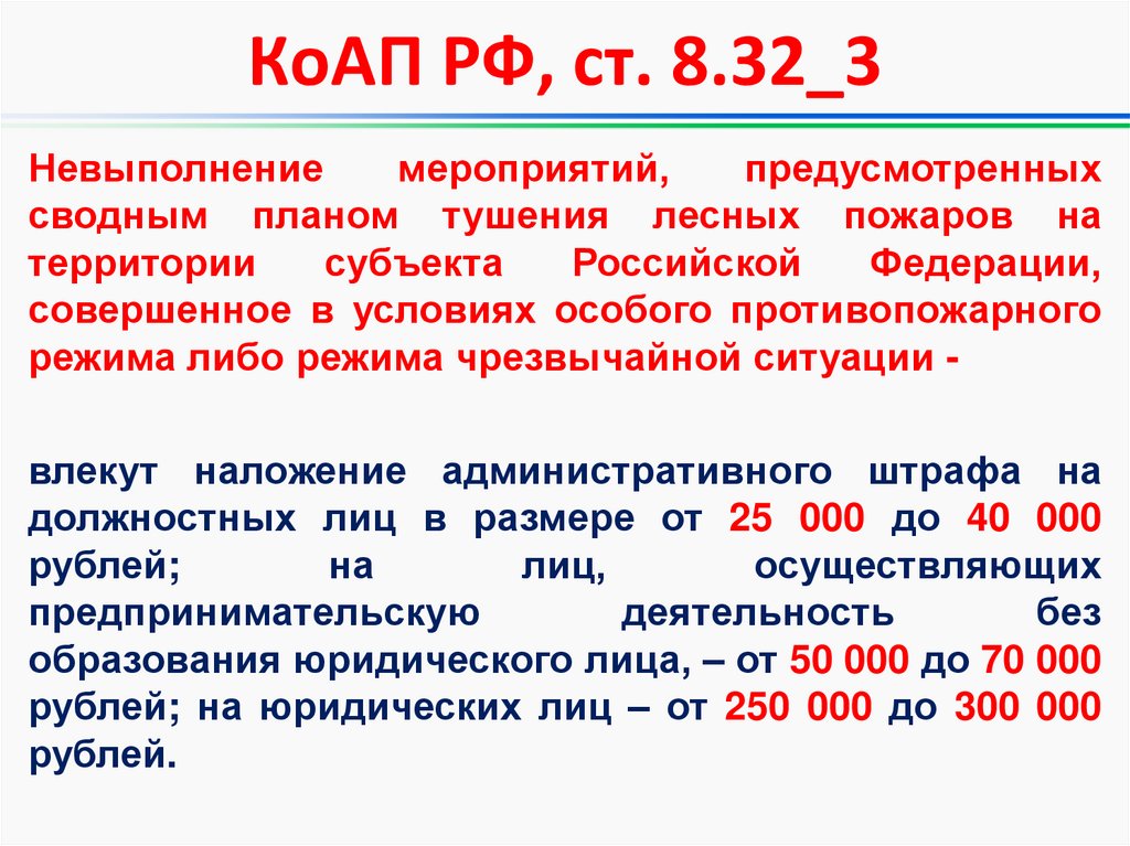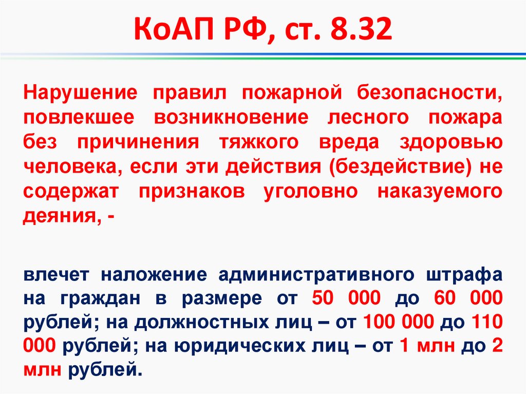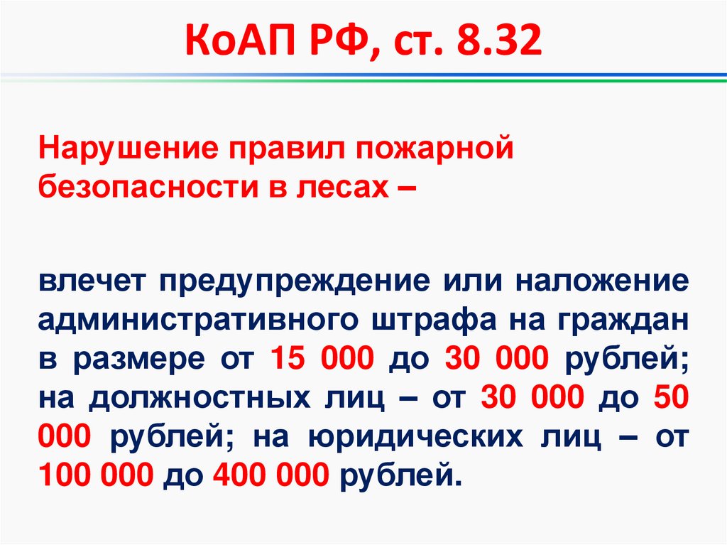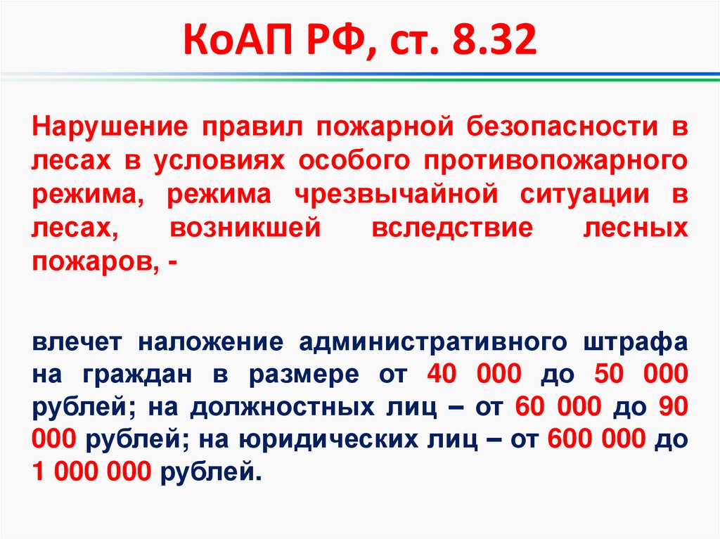 КоАП РФ, ст. 8.32Нарушение правил пожарной безопасности,