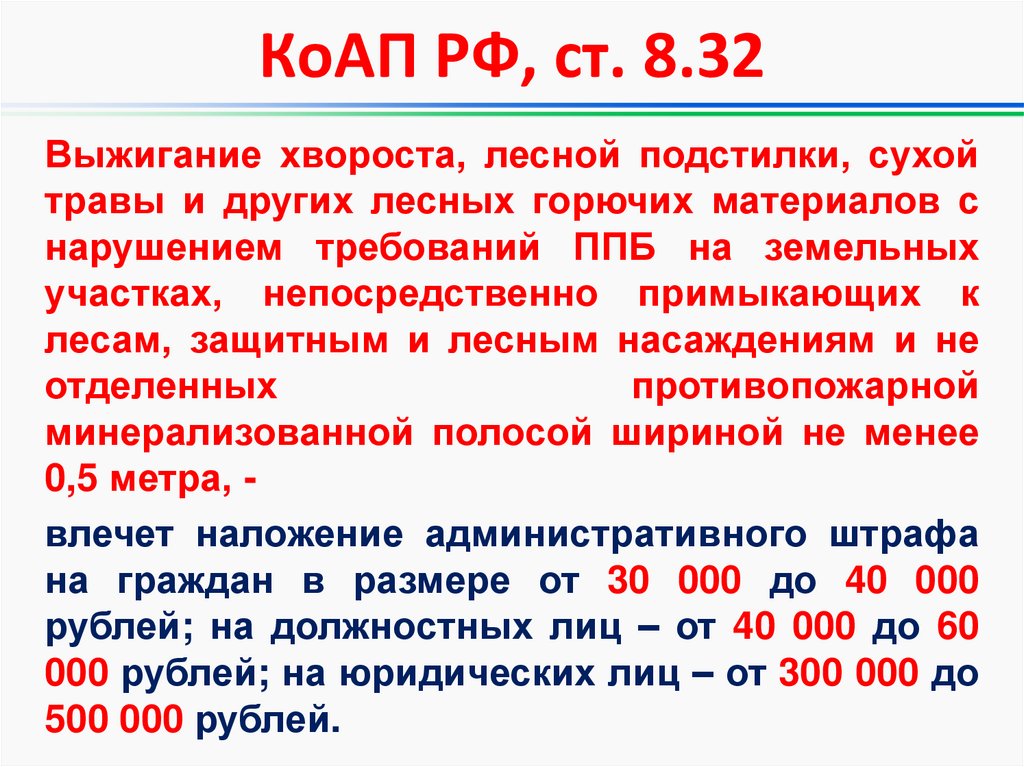 КоАП РФ, ст. 8.32Выжигание хвороста, лесной подстилки, сухой