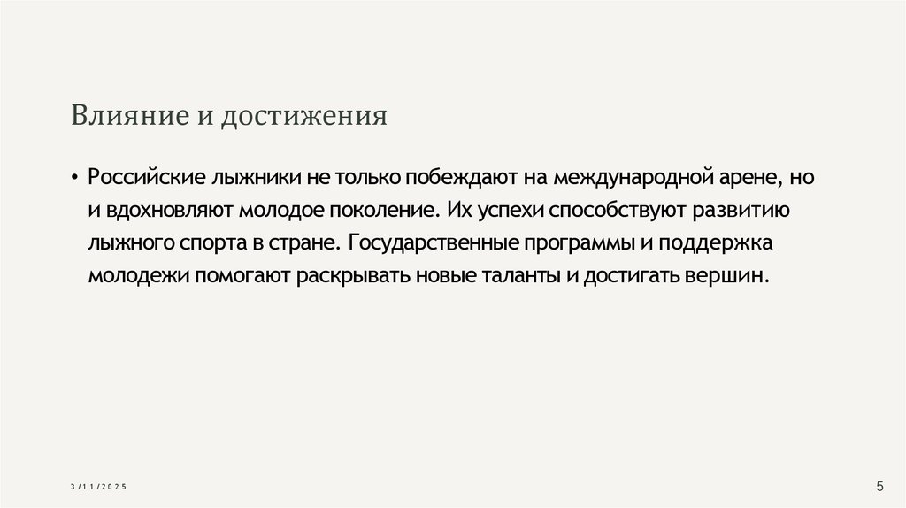 Влияние и достижения• Российские лыжники не только побеждают на международной арене, но