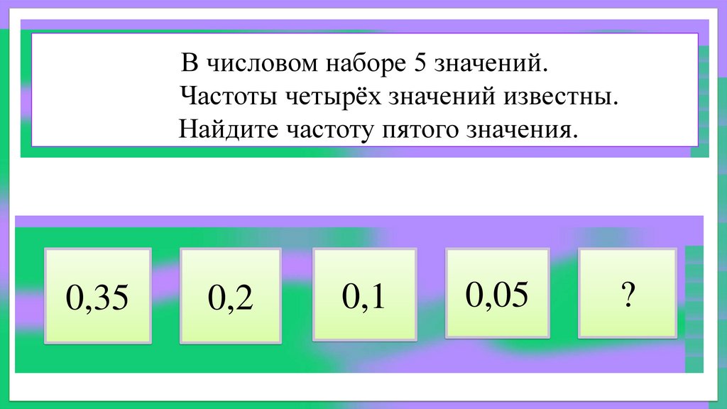 В числовом наборе 5 значений.Частоты четырёх значений известны.