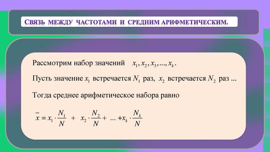 Рассмотрим набор значений х1 , х2 , х3 ,..., хk .Пусть значение х1 встречается N1 раз, х2 встречается N 2 раз ...
