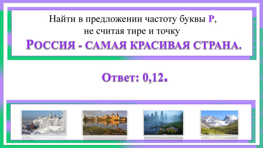 Найти в предложении частоту буквы Р,не считая тире и точку