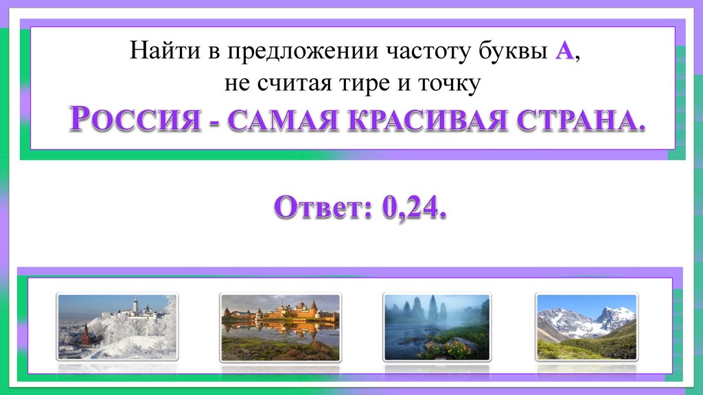 Найти в предложении частоту буквы А,не считая тире и точку