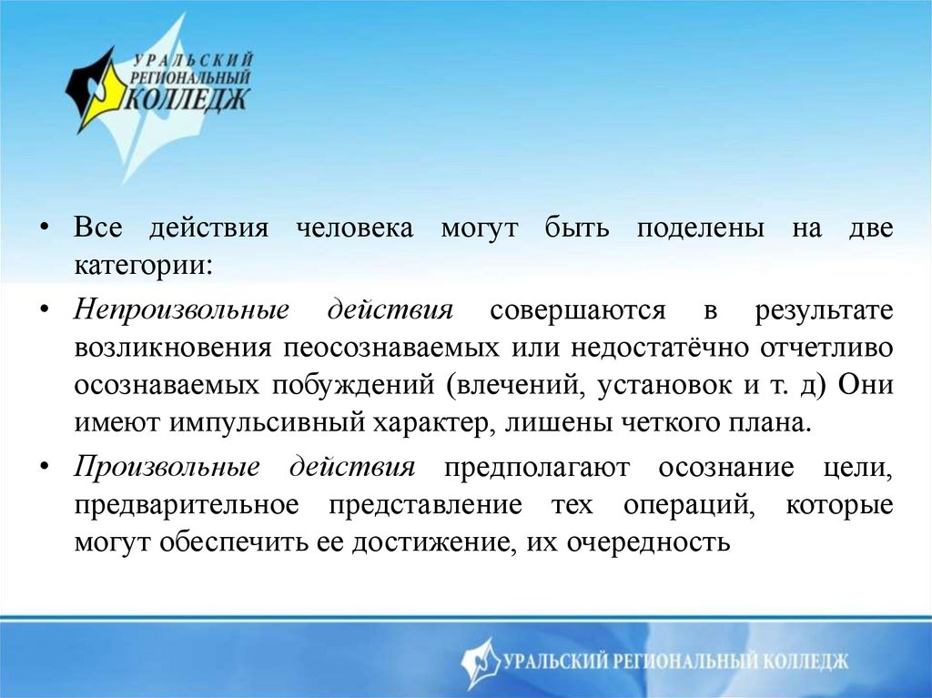 осознаваемых побуждений (влечений, установок и т. д) Они