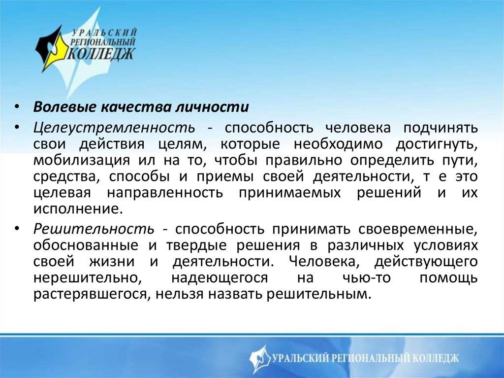 • Волевые качества лuчностu• Целеустремленность - способность человека подчинять