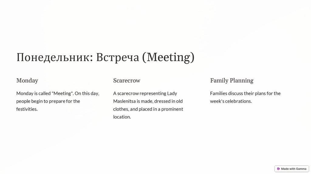 Понедельник: Встреча (Meeting)Monday