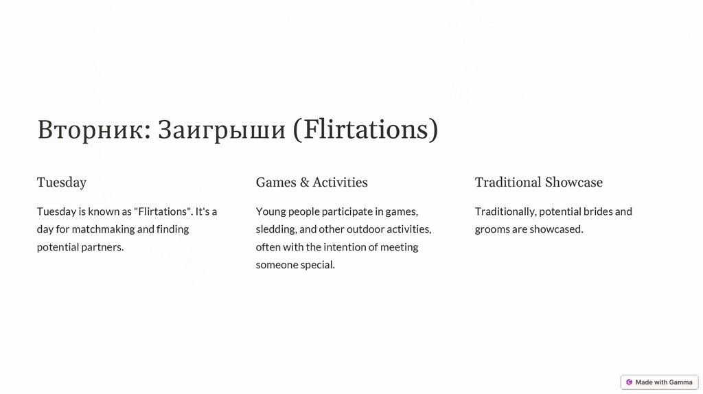 Вторник: Заигрыши (Flirtations)Tuesday