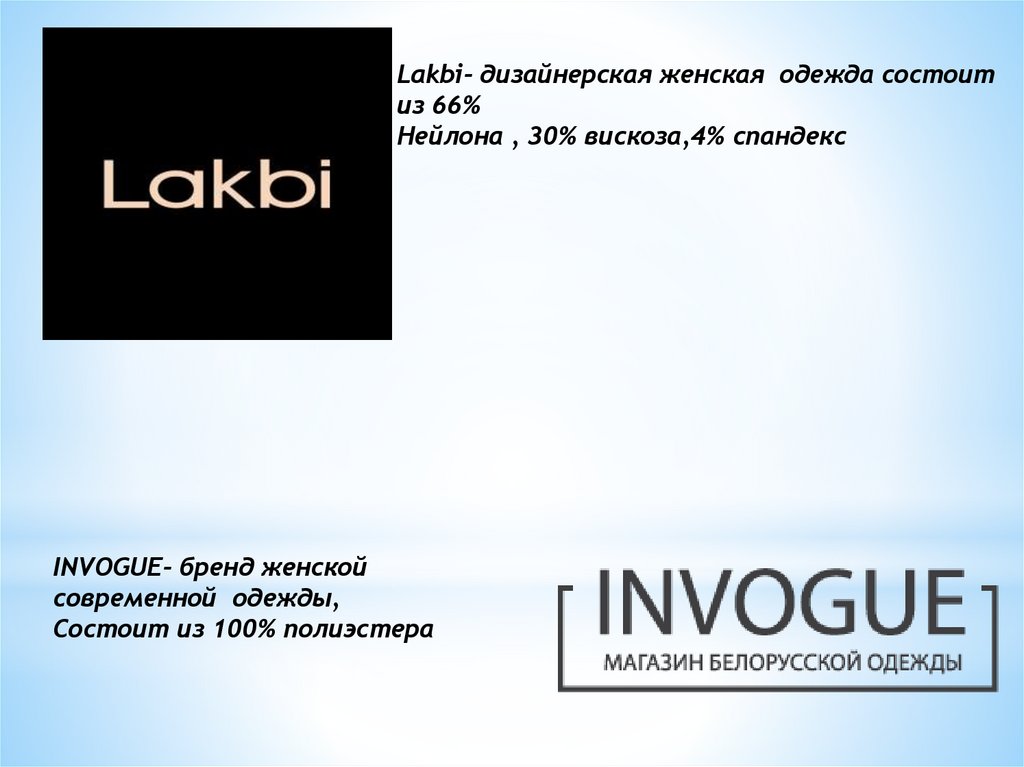 Lakbi- дизайнерская женская одежда состоитиз 66%