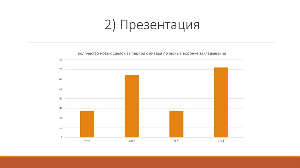 2) Презентацияколичество новых сделок за период с января по июнь в воронке закладывания