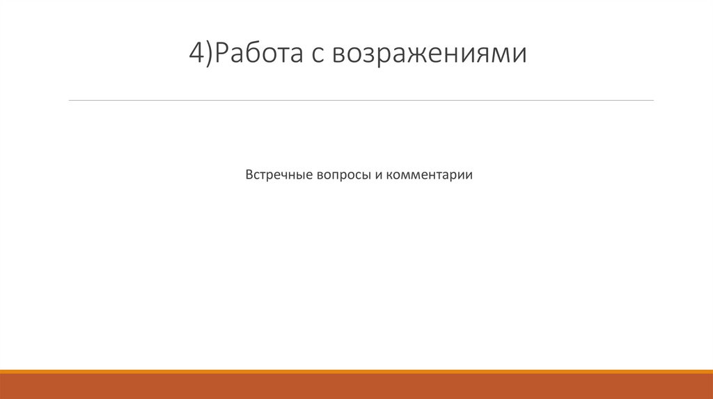 4)Работа с возражениямиВстречные вопросы и комментарии