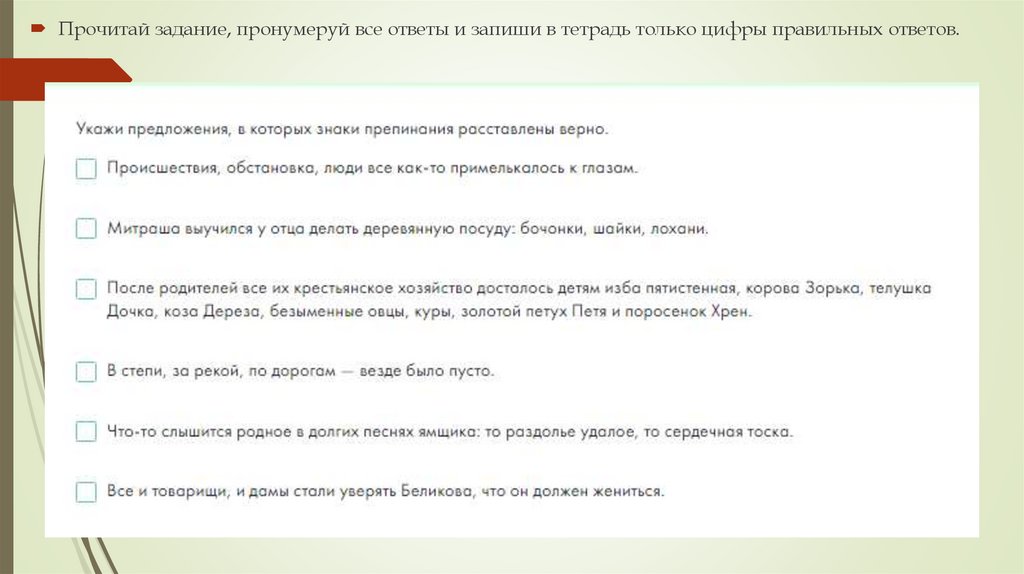 Прочитай задание, пронумеруй все ответы и запиши в тетрадь только цифры правильных ответов.6.
