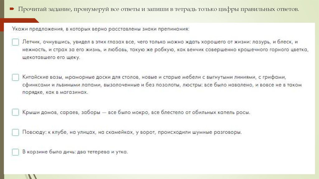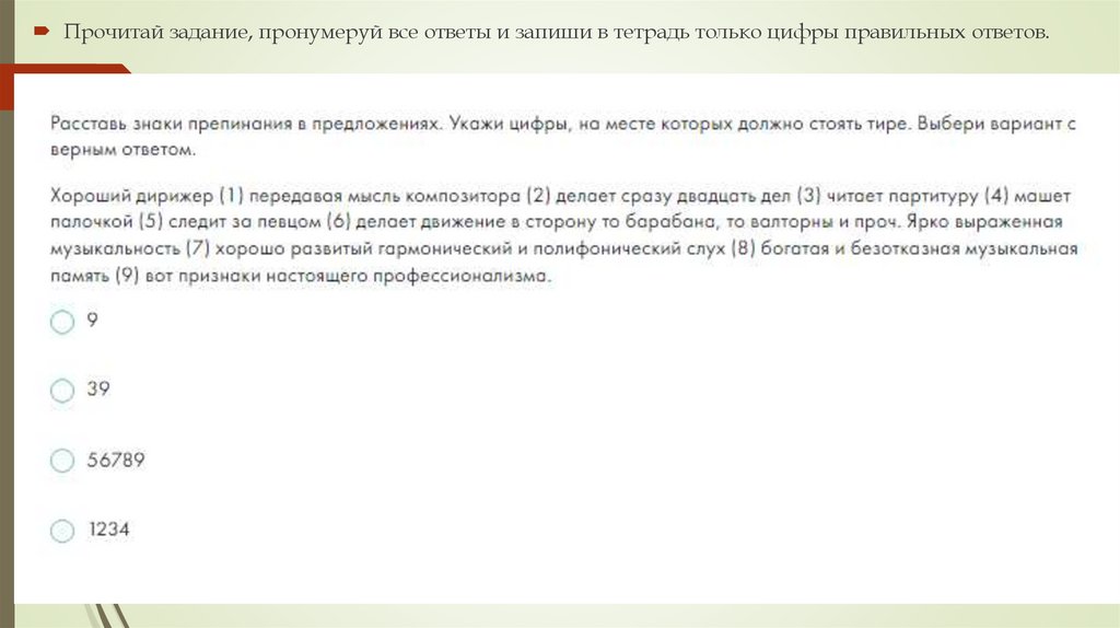 Прочитай задание, пронумеруй все ответы и запиши в тетрадь только цифры правильных ответов.4.