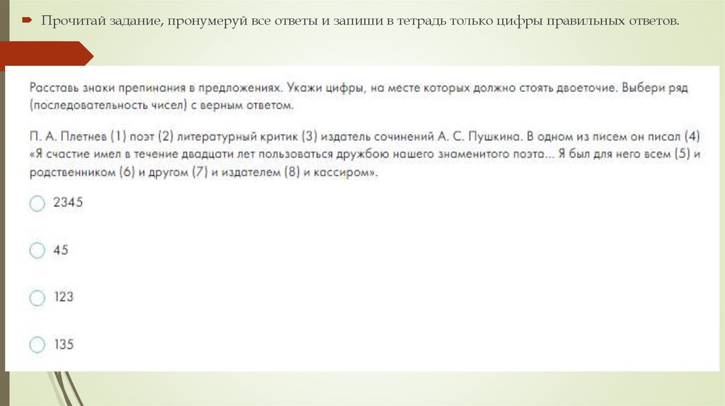 Прочитай задание, пронумеруй все ответы и запиши в тетрадь только цифры правильных ответов.5.