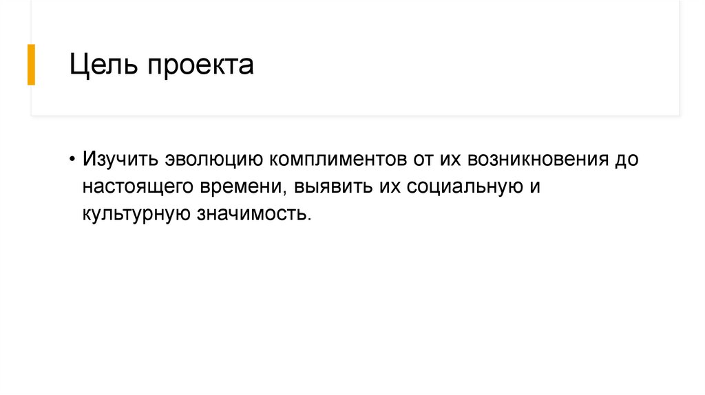 Цель проекта• Изучить эволюцию комплиментов от их возникновения до
