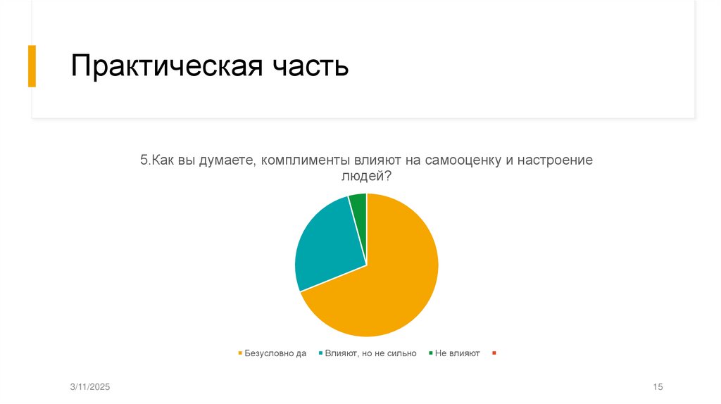Практическая часть5.Как вы думаете, комплименты влияют на самооценку и настроение