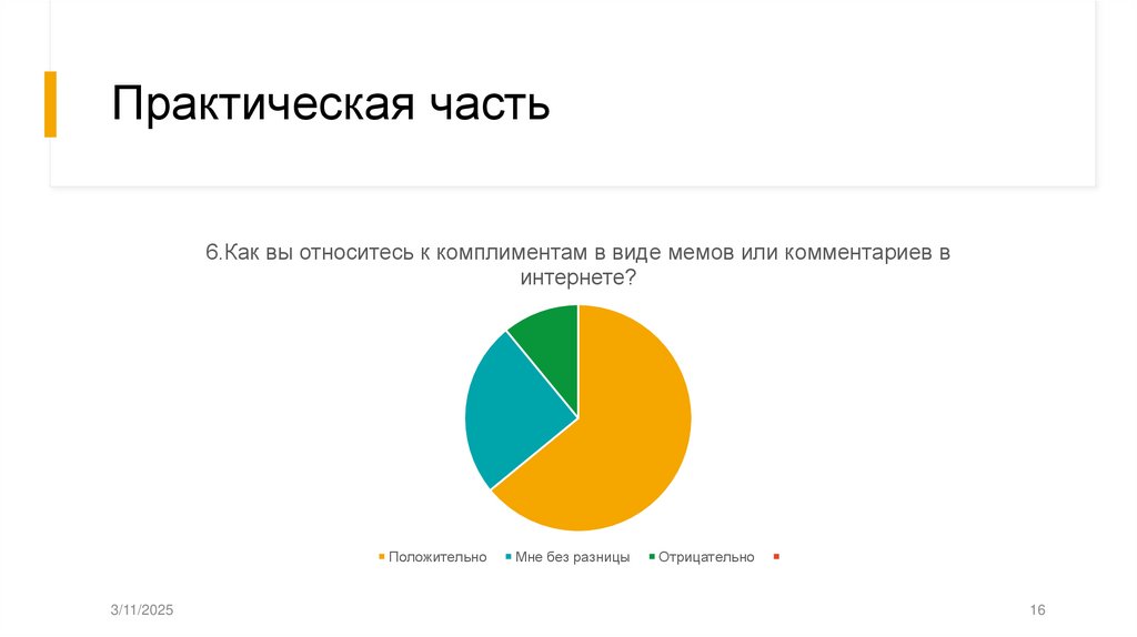 Практическая часть6.Как вы относитесь к комплиментам в виде мемов или комментариев в