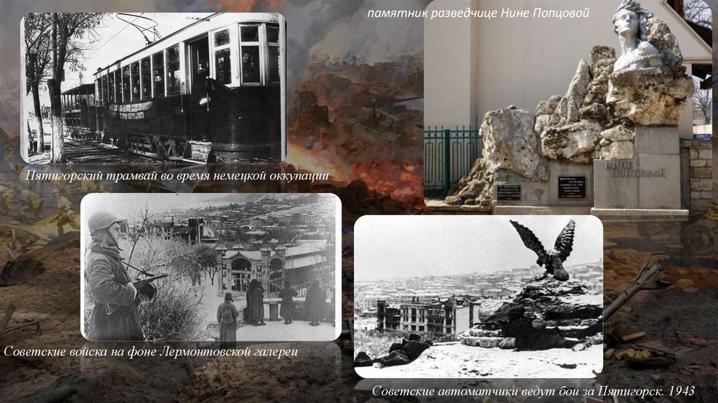 памятник разведчице Нине ПопцовойПятигорский трамвай во время немецкой оккупации