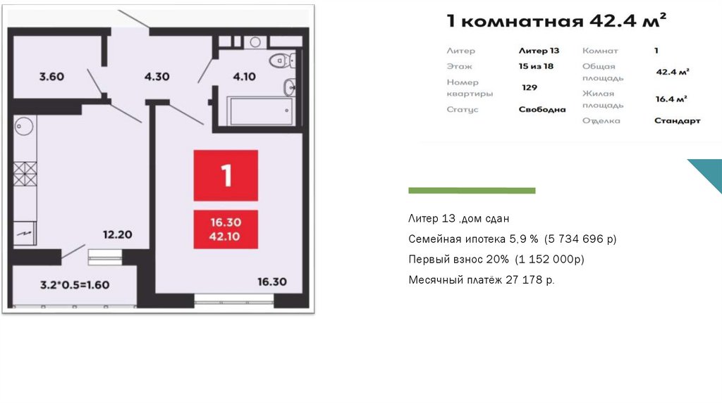 Литер 13 ,дом сданСемейная ипотека 5,9 % (5 734 696 р)