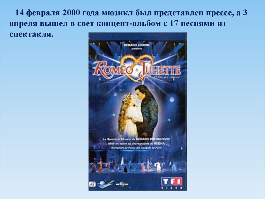 2002 года. К тому времени мюзикл "Ромео и Джульетта" посмотрели
