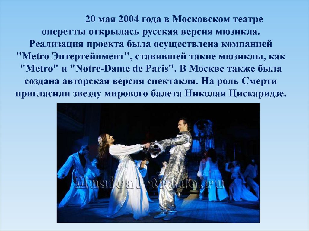 "Metro" и "Notre-Dame de Paris". В Москве также была