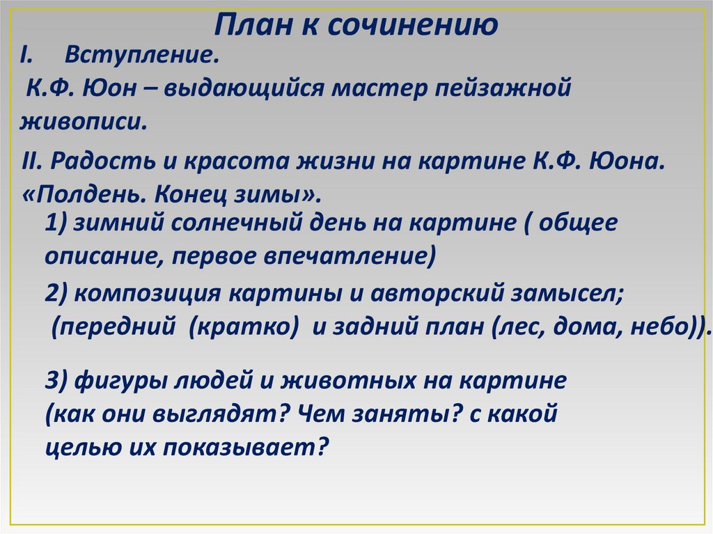 Сочинение по картине К.Ф. Юона«Конец зимы. Полдень».