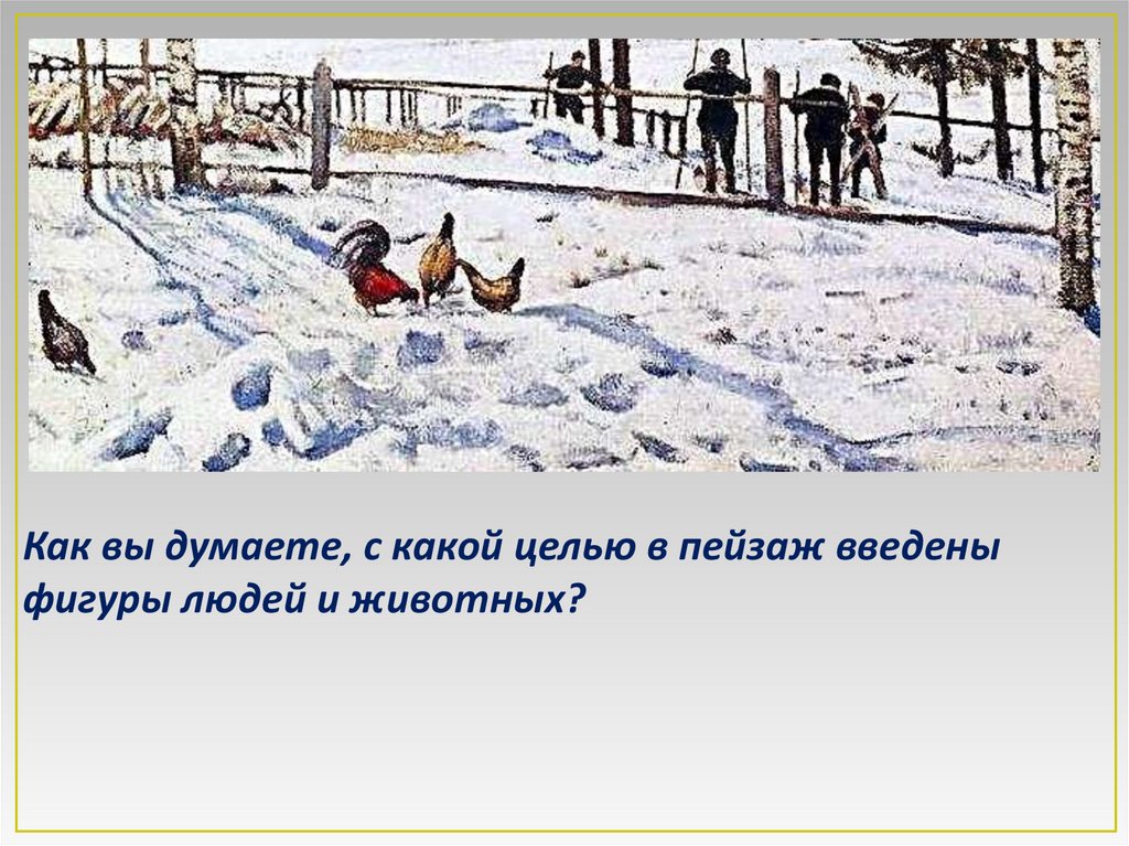 Как вы думаете, с какой целью в пейзаж введеныфигуры людей и животных?