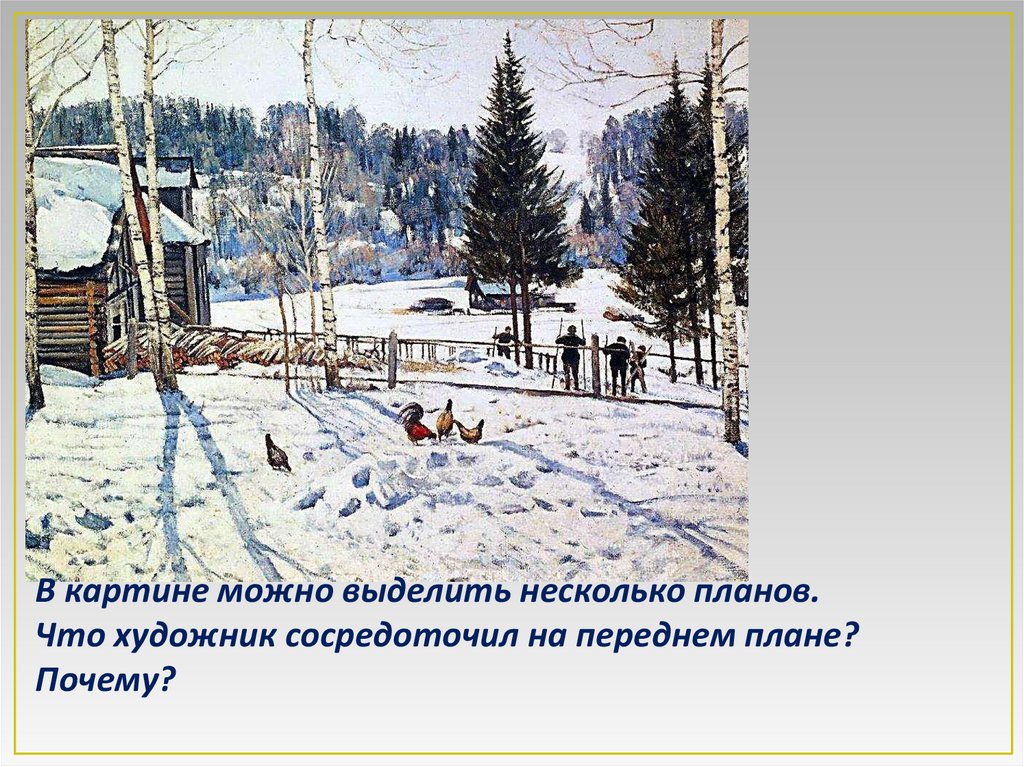 В картине можно выделить несколько планов.Что художник сосредоточил на переднем плане?