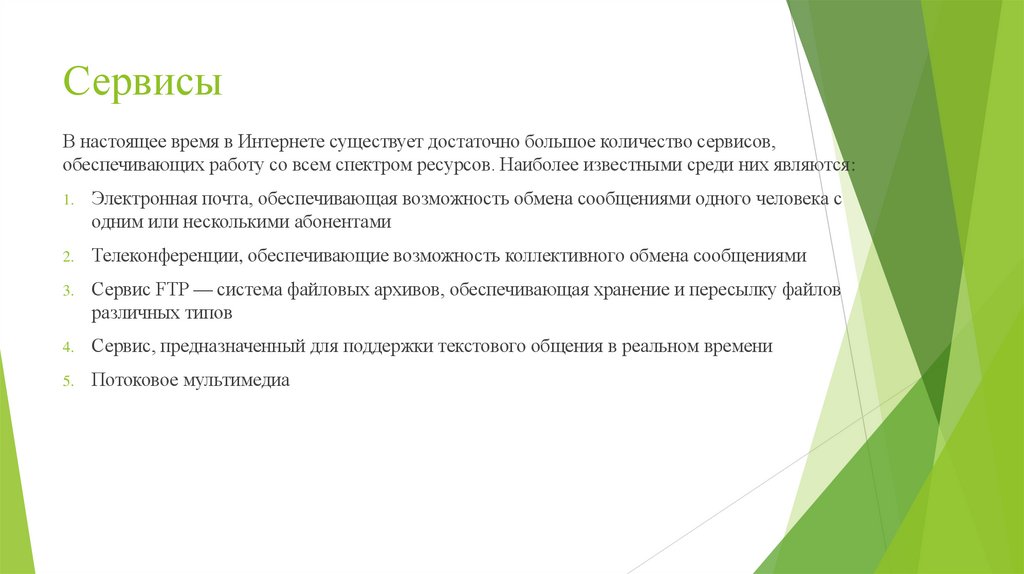 СервисыВ настоящее время в Интернете существует достаточно большое количество сервисов,