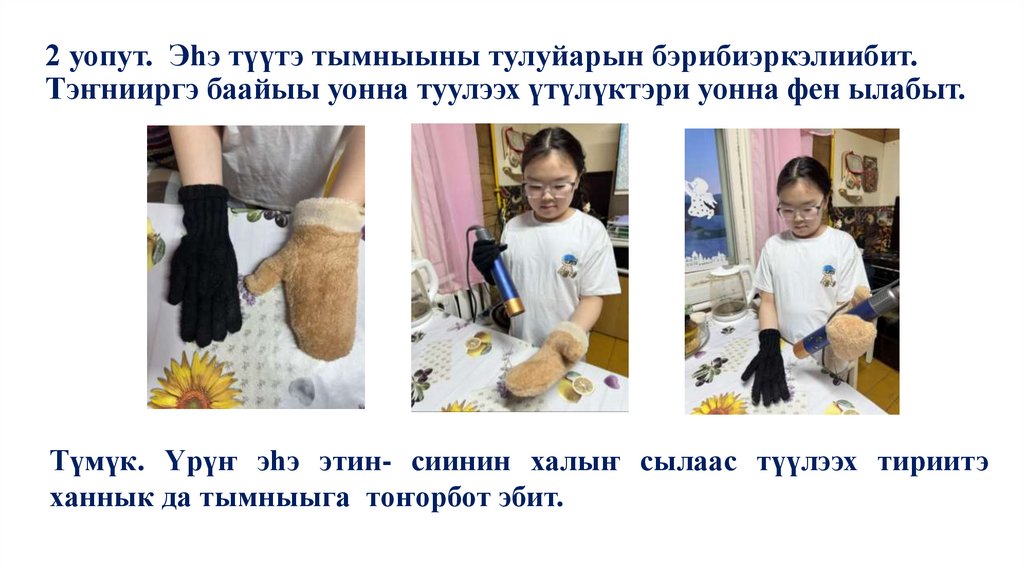 2 уопут. Эһэ түүтэ тымныыны тулуйарын бэрибиэркэлиибит.Тэҥнииргэ баайыы уонна туулээх үтүлүктэри уонна фен ылабыт.