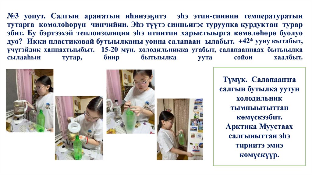 дуо? Икки пластиковай бутыылканы уонна салапаан ылабыт. +42* ууну кытабыт,