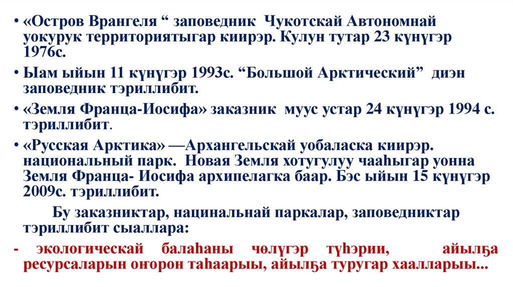 • «Остров Врангеля “ заповедник Чукотскай Автономнайуокурук территориятыгар киирэр. Кулун тутар 23 күнүгэр