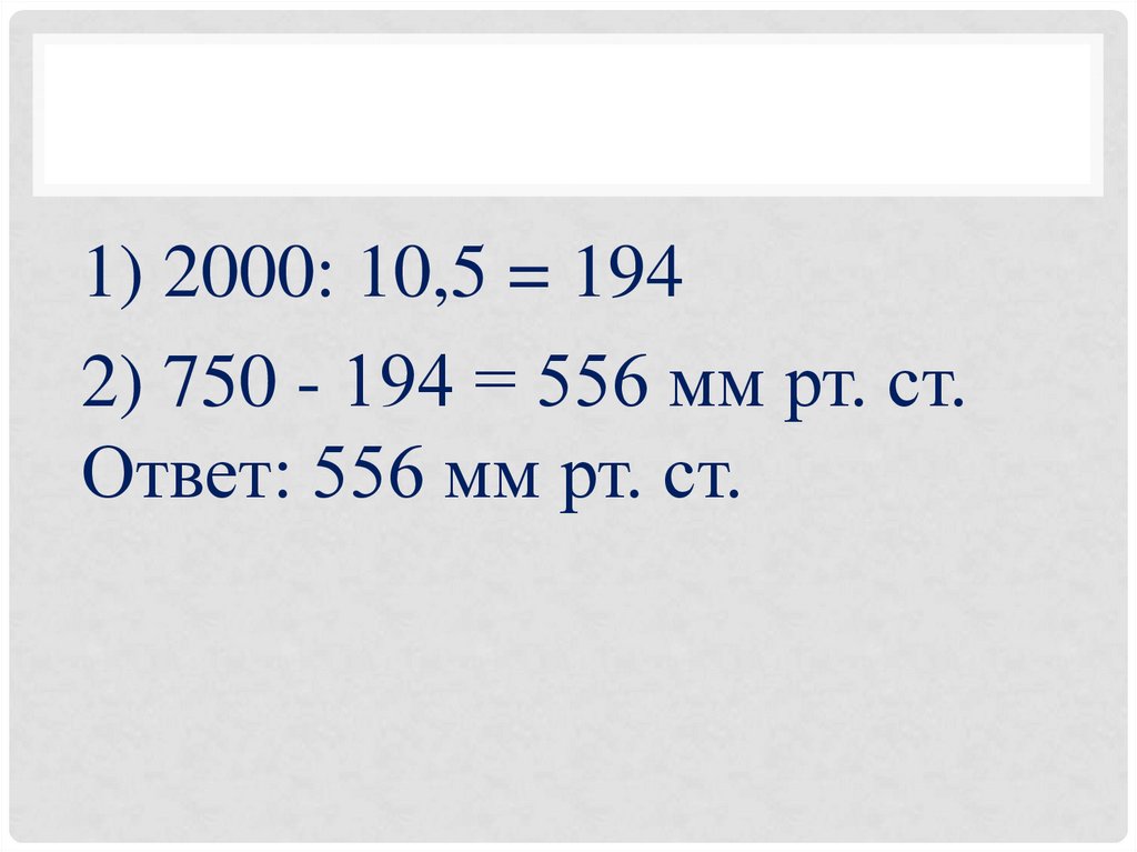 1) 2000: 10,5 = 1942) 750 - 194 = 556 мм рт. ст.