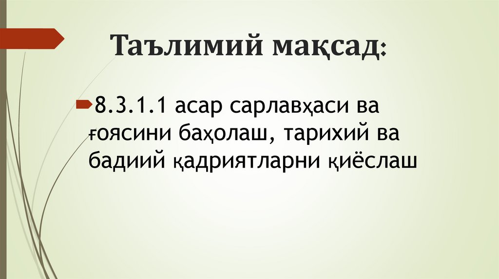Таълимий мақсад:8.3.1.1 асар сарлавҳаси ва