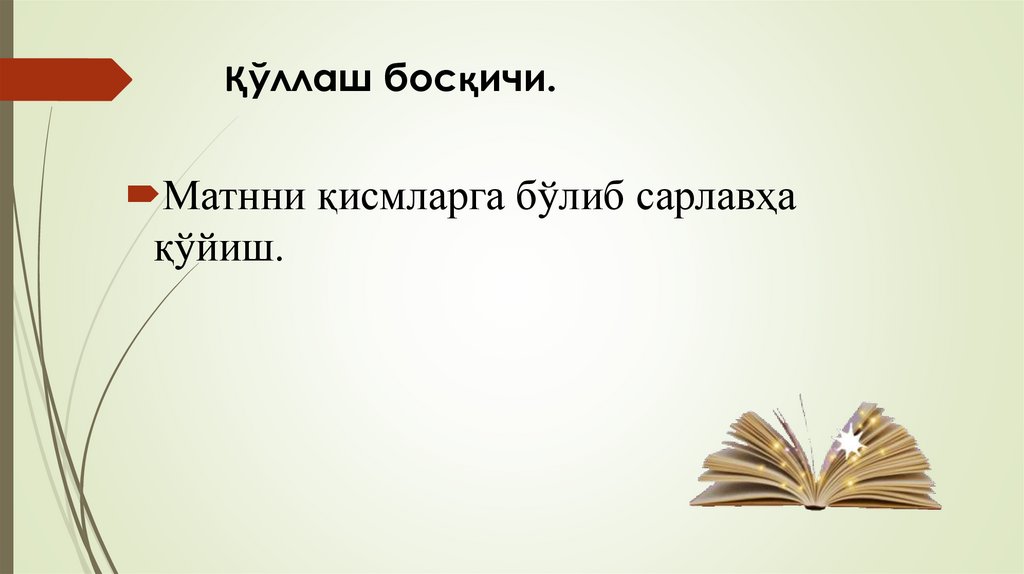 Қўллаш босқичи.Матнни қисмларга бўлиб сарлавҳа