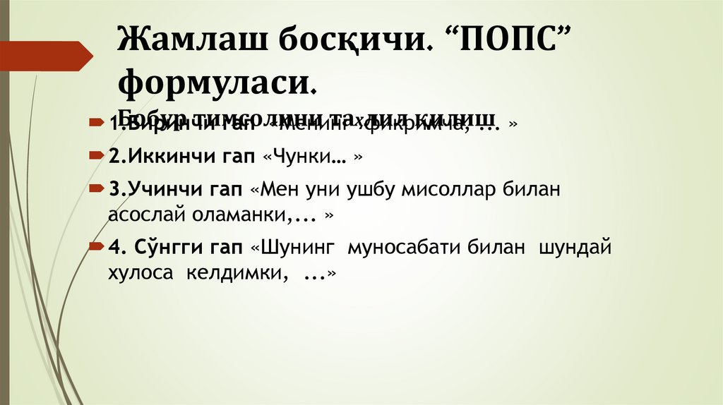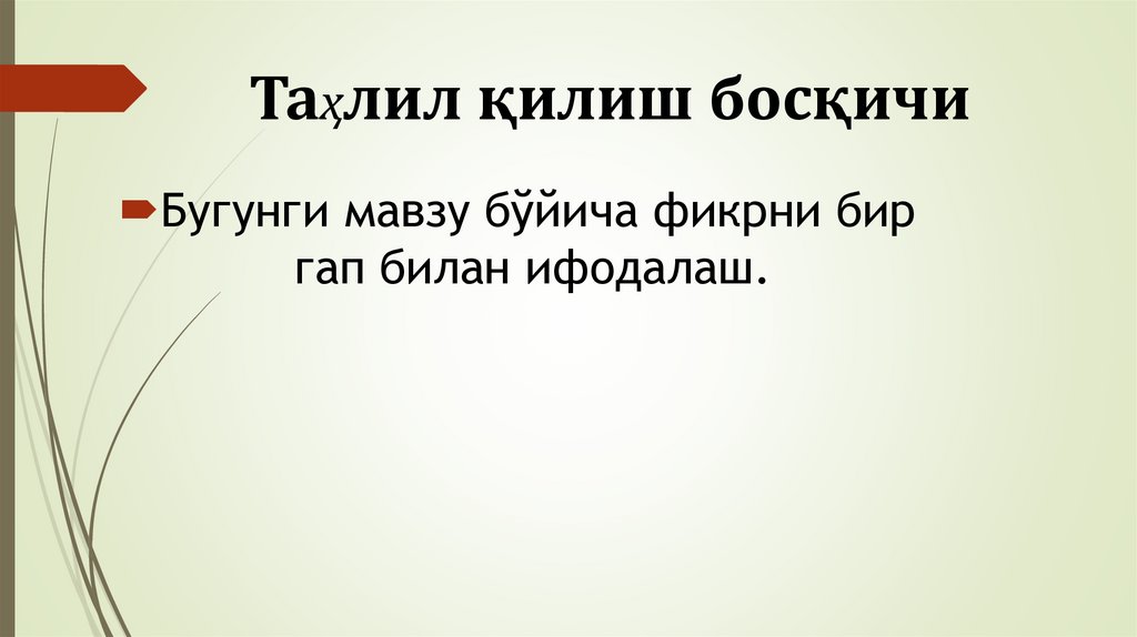 Таҳлил қилиш босқичиБугунги мавзу бўйича фикрни бир