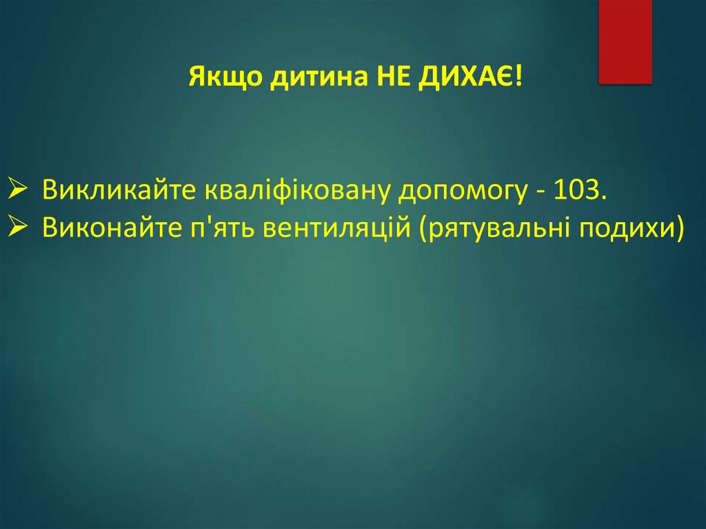 Якщо дитина НЕ ДИХАЄ!Викликайте кваліфіковану допомогу - 103.