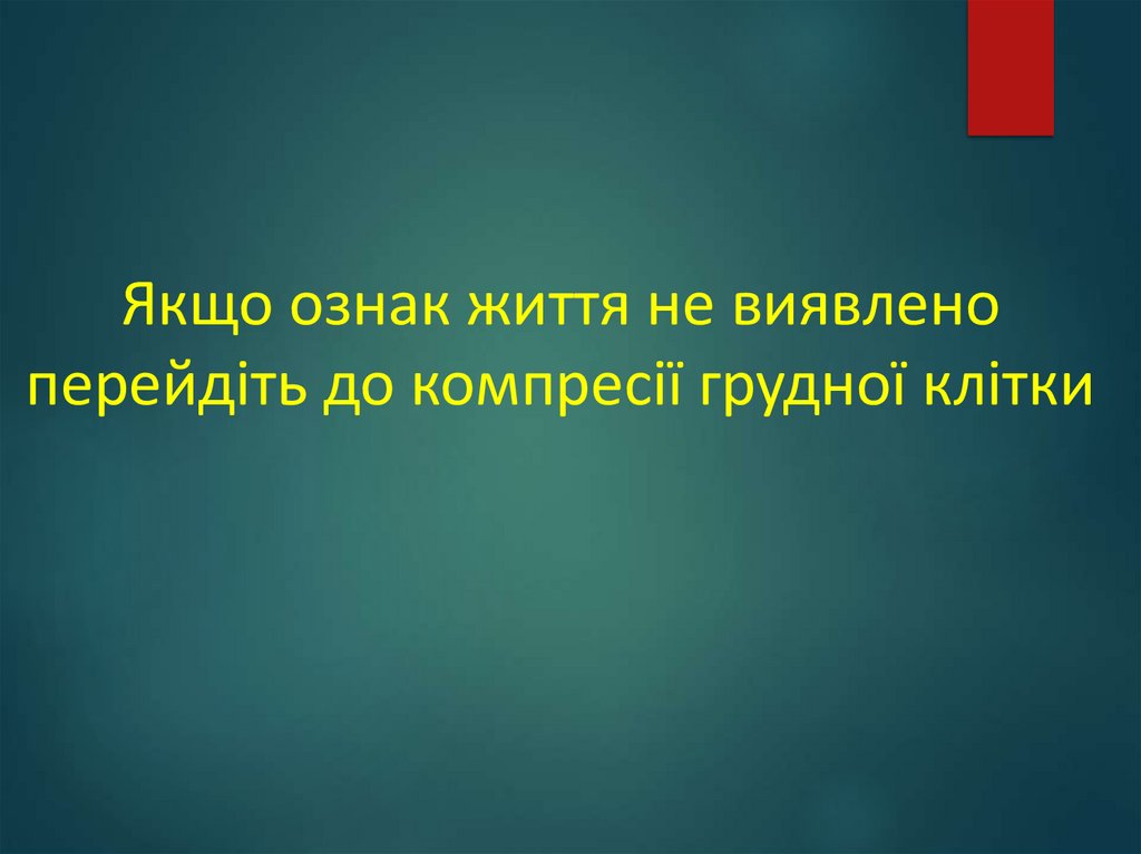 14. Якщо ознак життя не виявлено перейдіть до компресії грудної клітки
