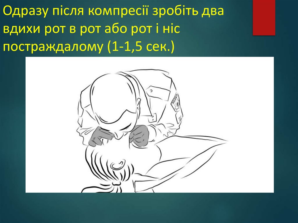 Одразу після компресії зробіть двавдихи рот в рот або рот і ніс
