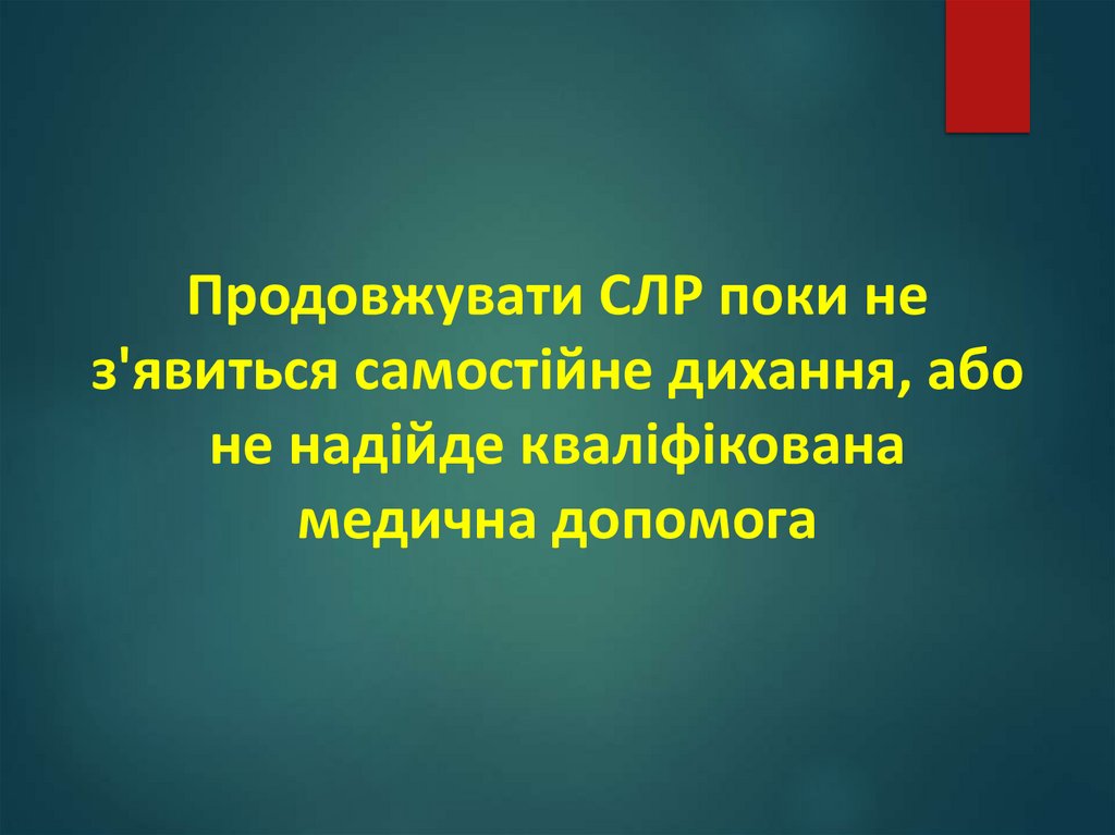 Продовжувати СЛР поки нез'явиться самостійне дихання, або